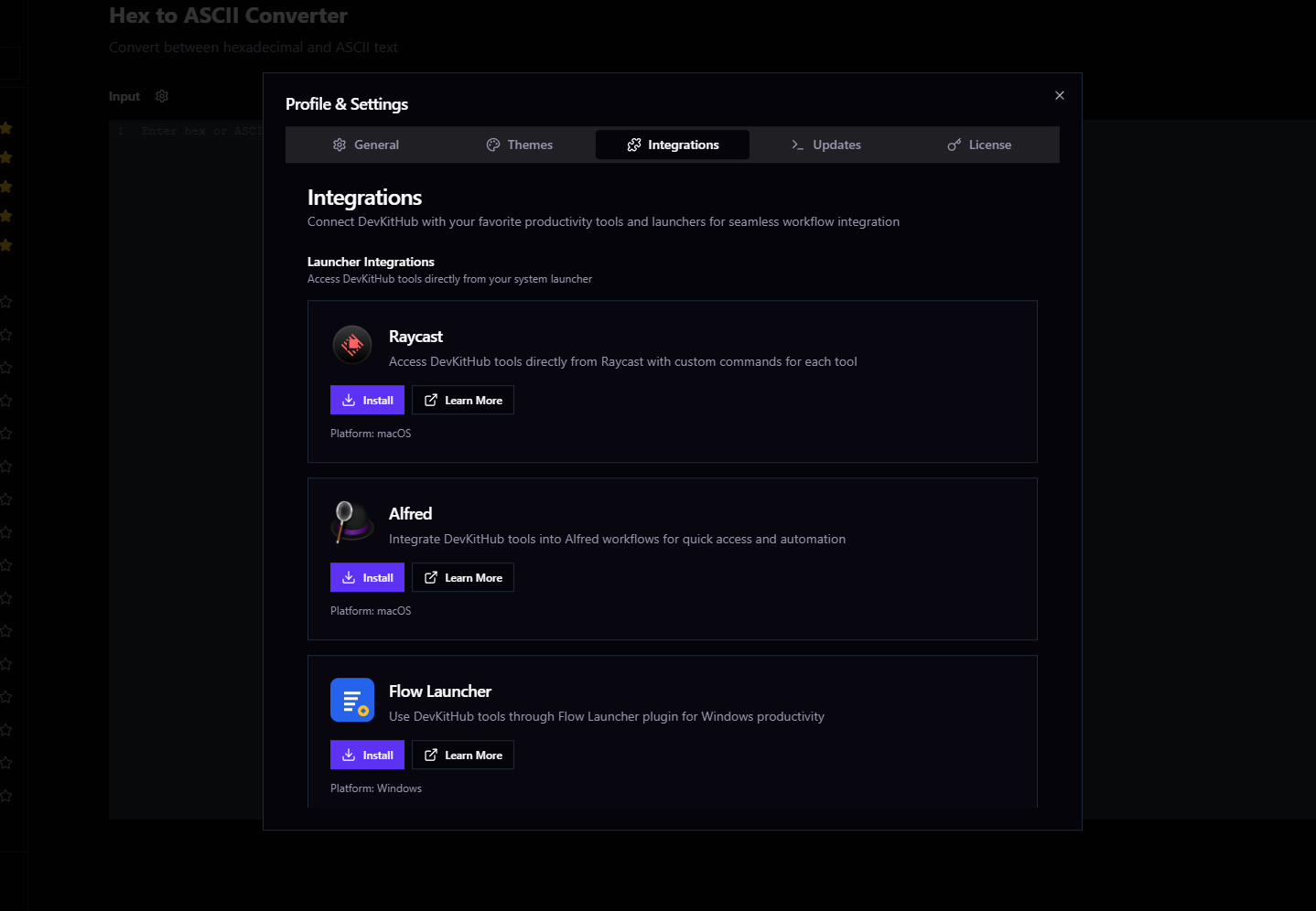 Integrate with your favorite tools like Alfred, Raycast, or terminal commands. (Work in progress)